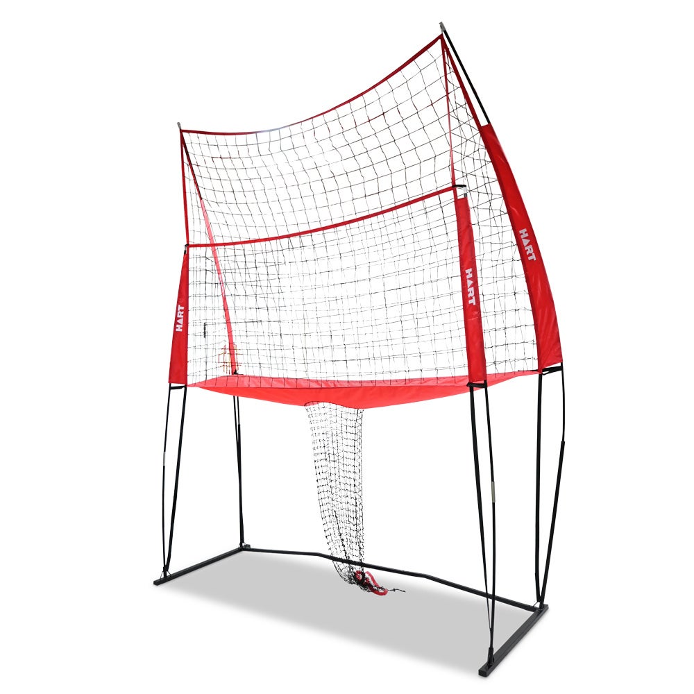 Train anywhere, anytime with the HART Volleyball Practice Station. A versatile setup designed to help players refine serving, setting, and passing techniques. Whether you're on the court, in the backyard, or at school, this station provides a complete training solution with a regulation-height net, both men's and women's heights, barrier net, and sock-catching net to secure balls after impact.
